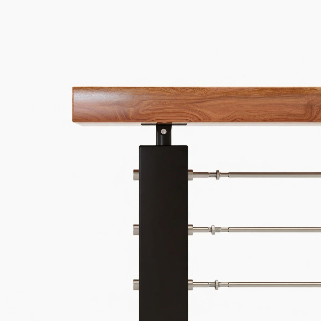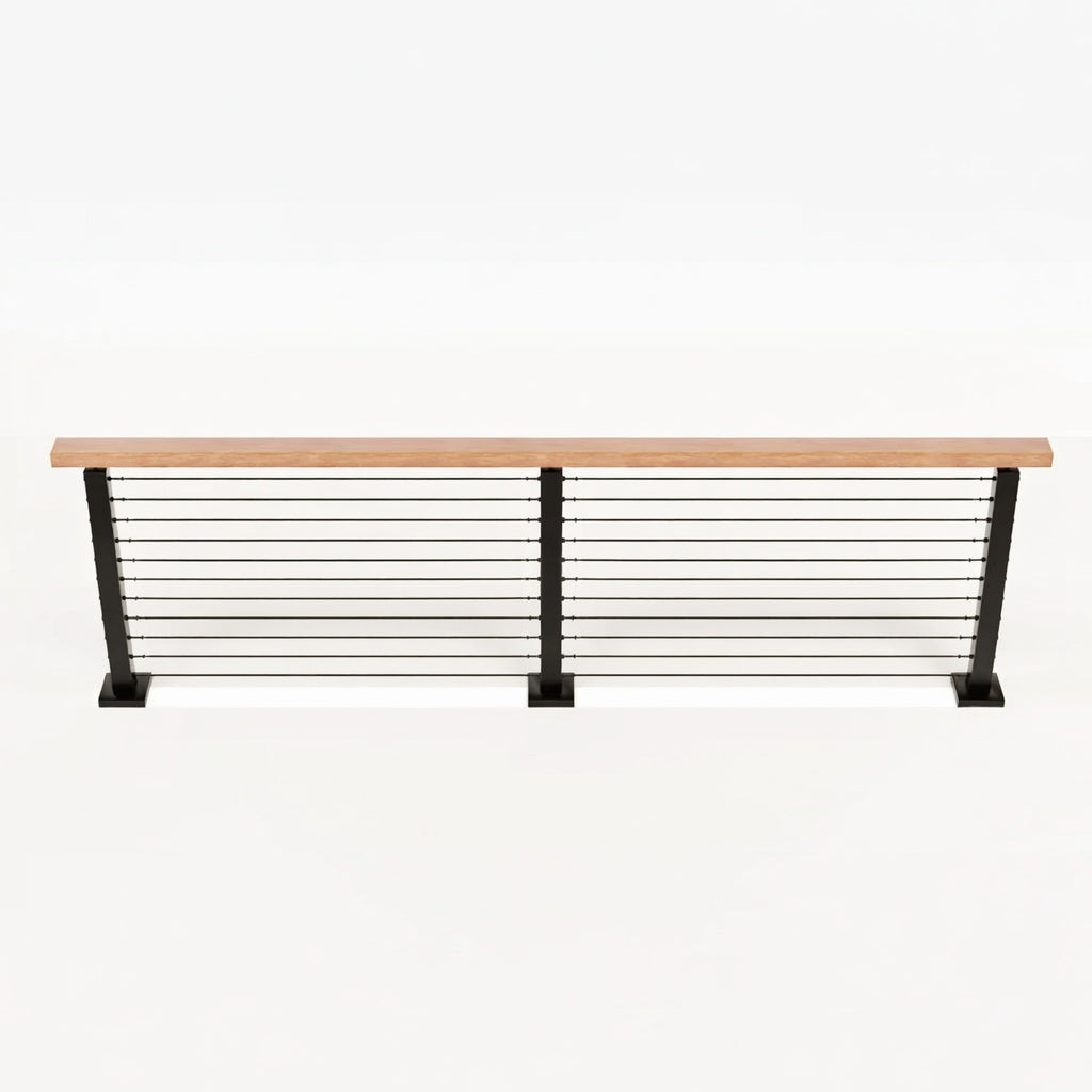 This 8’ black metal cable railing system with a matching light wood top rail offers a sleek, modern appearance combined with long-term durability. Ideal for decks, stairs, balconies, and interior spaces, the system is engineered for strength and reliability, featuring cable tension strength up to 3,000 lbs and a corrosion-resistant finish suitable for both indoor and outdoor use.